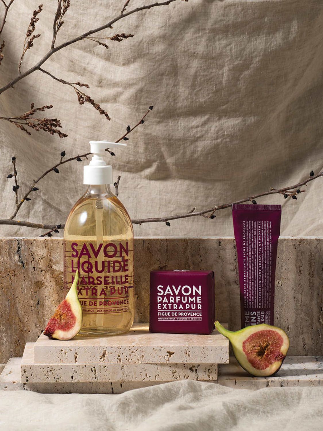 Saponified in a cauldron using a traditional method, Compagnie De Provence's liquid soap is enriched with botanical oils. It transforms into a fine lather that gently cleanses the skin.