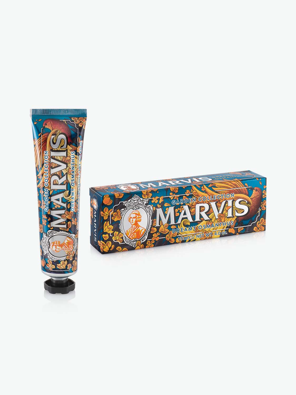 Elevate your oral care ritual with the Marvis Garden Collection, featuring the aromatic Sinuous Lily, the vibrant Dreamy Osmanthus, and the delicately fragrant Kissing Rose. Each toothpaste offers a unique sensory journey, blending Marvis' signature formula with the enticing essence of these exquisite flowers. Experience the perfect harmony of sophistication and freshness that the Marvis Garden Collection brings to your daily routine.