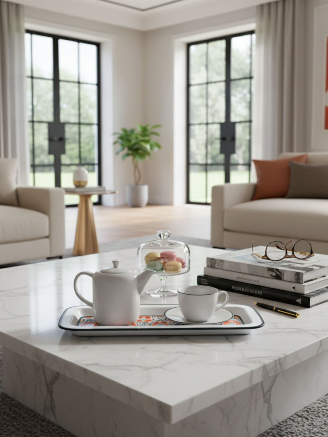 Les Ottomans Hand-Painted Iron Tray Ikat White