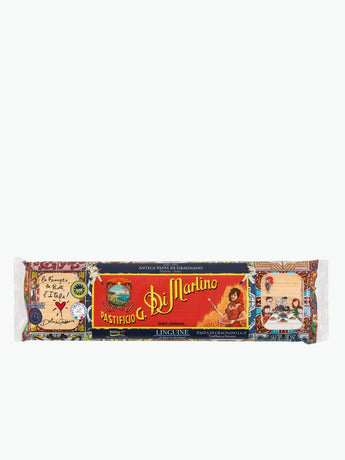 Italian tradition meets fashion. This limited-edition Linguine is a creative partnership between Pastificio Di Martino and Dolce & Gabbana. Crafted in Gragnano, the renowned home of pasta, this durum wheat semolina pasta is I.G.P. certified, guaranteeing authentic quality and time-honored production methods.