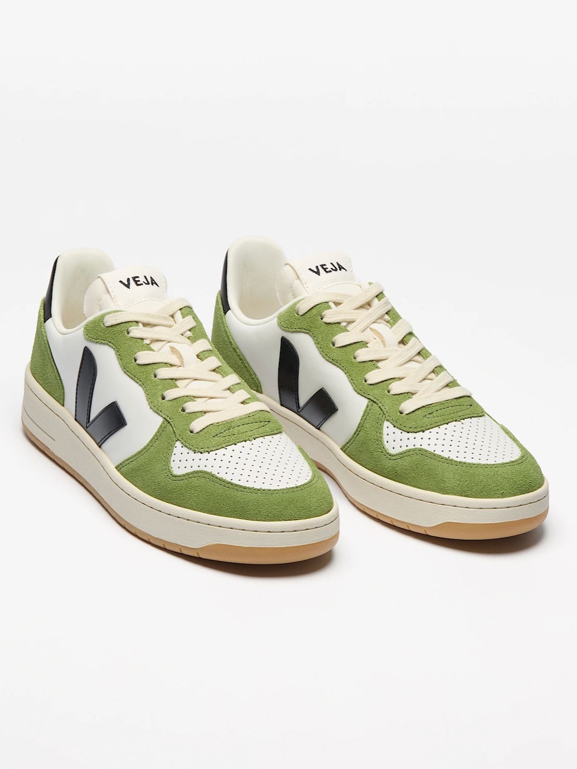 Veja V-10 leather sneakers embody conscious craftsmanship, blending sustainable design with timeless style. Made from raw, responsibly sourced materials — including wild Amazonian rubber and organic cotton — each pair supports Brazilian communities and protects precious ecosystems. With their sturdy leather construction and gripped soles, these sneakers make a statement about purpose and sustainability.