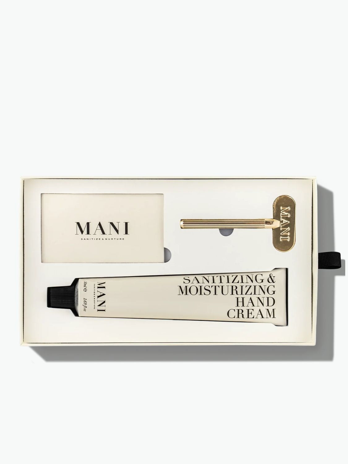 The Mani Sanitizing and Moisturizing Hand Cream Set elevates daily care into a refined ritual. This elegant gift box includes Mani’s signature hand cream — a luxurious blend of hydration and hygiene enriched with avocado oil, herbal extracts, and vitamins A, C, and E — alongside a sleek metal tube key for the perfect finishing touch. The rich, silky formula sanitizes while leaving hands soft, smooth, and delicately scented with a hypoallergenic fragrance. A thoughtful gift or indulgent treat, designed for those who believe care and sophistication belong in every detail.